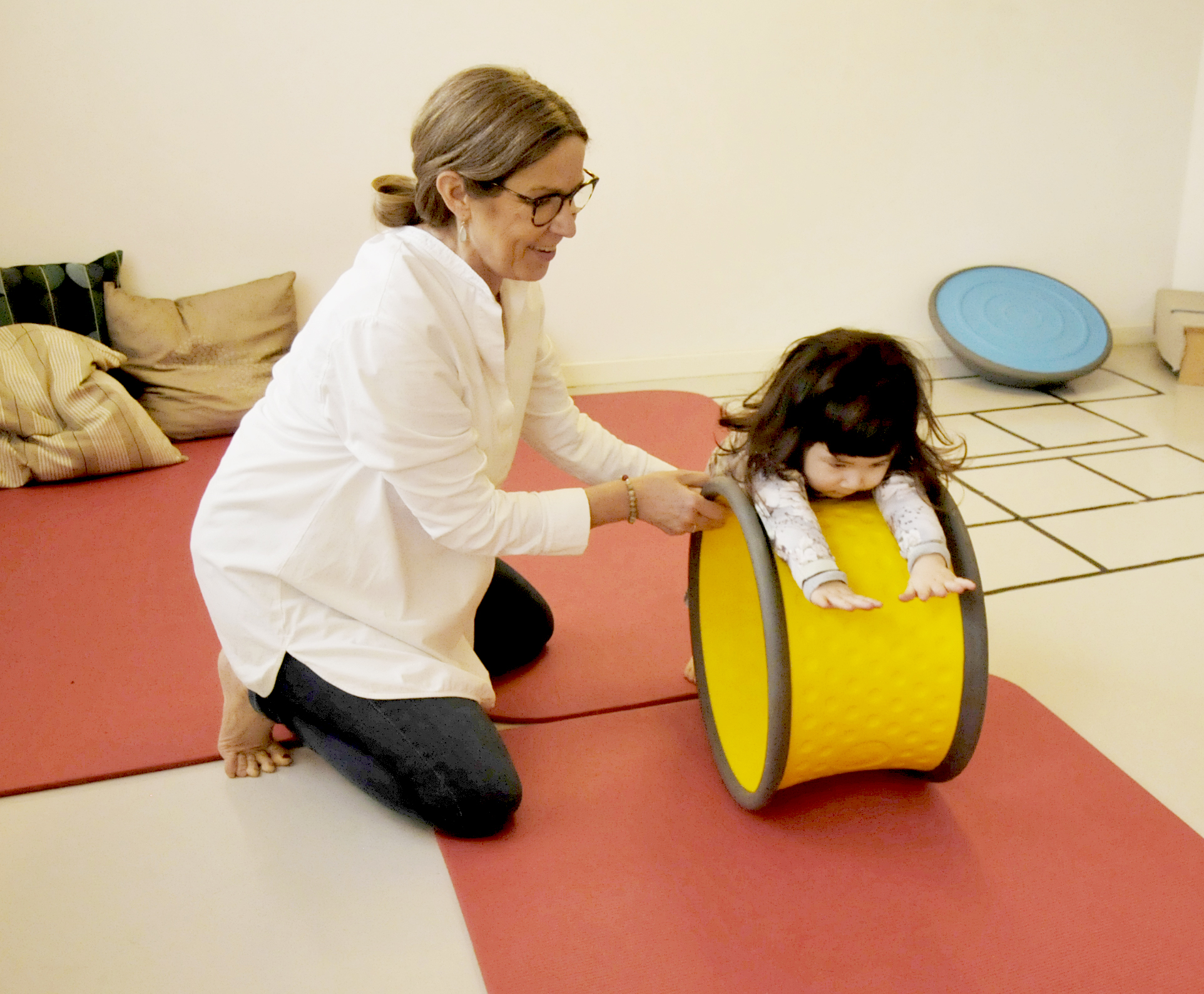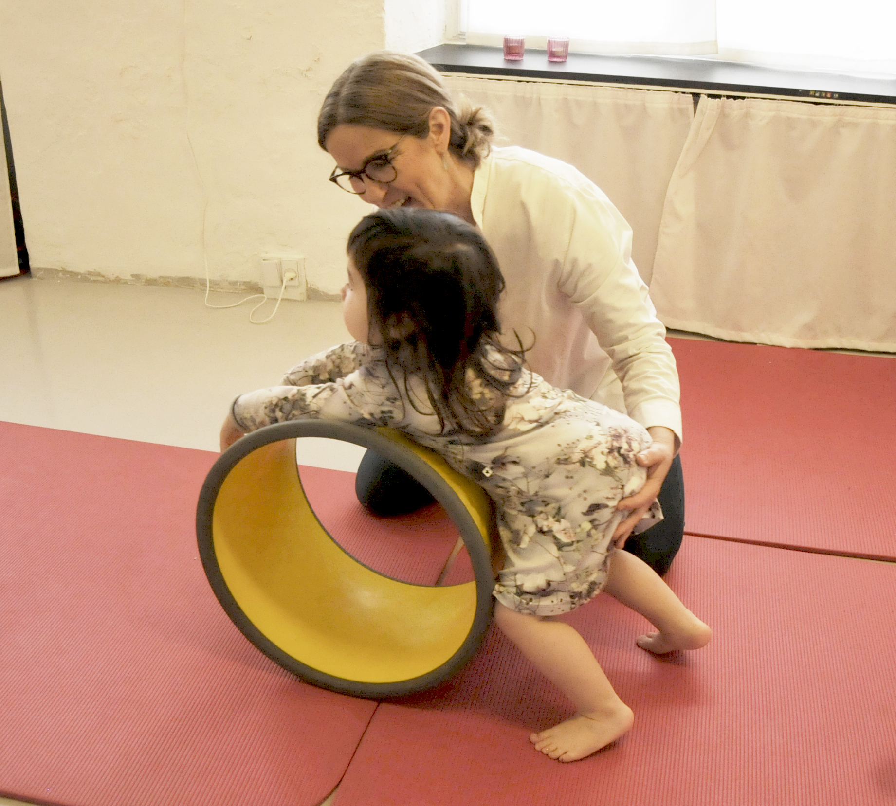 Children are normally good at cushioning their falls and are seldom seriously injured. The mechanism in which we break a fall with our hands is called the fall reflex. Some children tend to hit their head and the area around the mouth. This may indicate that they do not have an adequate fall reflex, i.e. they do not break their fall properly with their hands. Alternatively, the child‘s fall reflex may be impaired due to a lack of muscular strength in the arms that prevents him/her from protecting the head from colliding with whatever he/she falls onto. Rolling over a Body Wheel is a good exercise to train the fall reflexes and the arms’ capacity to cushion the fall with good force. The Body Wheel is available in two sizes. The slightly curved shape with raised rubber edges helps the child to lie safely on his/her abdomen on the Body Wheel. There is a modest degree of friction between the rubber edges and the surface that makes it easy to manage and control the rolling movement of the Body Wheel. The firm surface of the Body Wheel helps to make the child feel safer than if he/she was asked to roll on a squashy therapy ball.