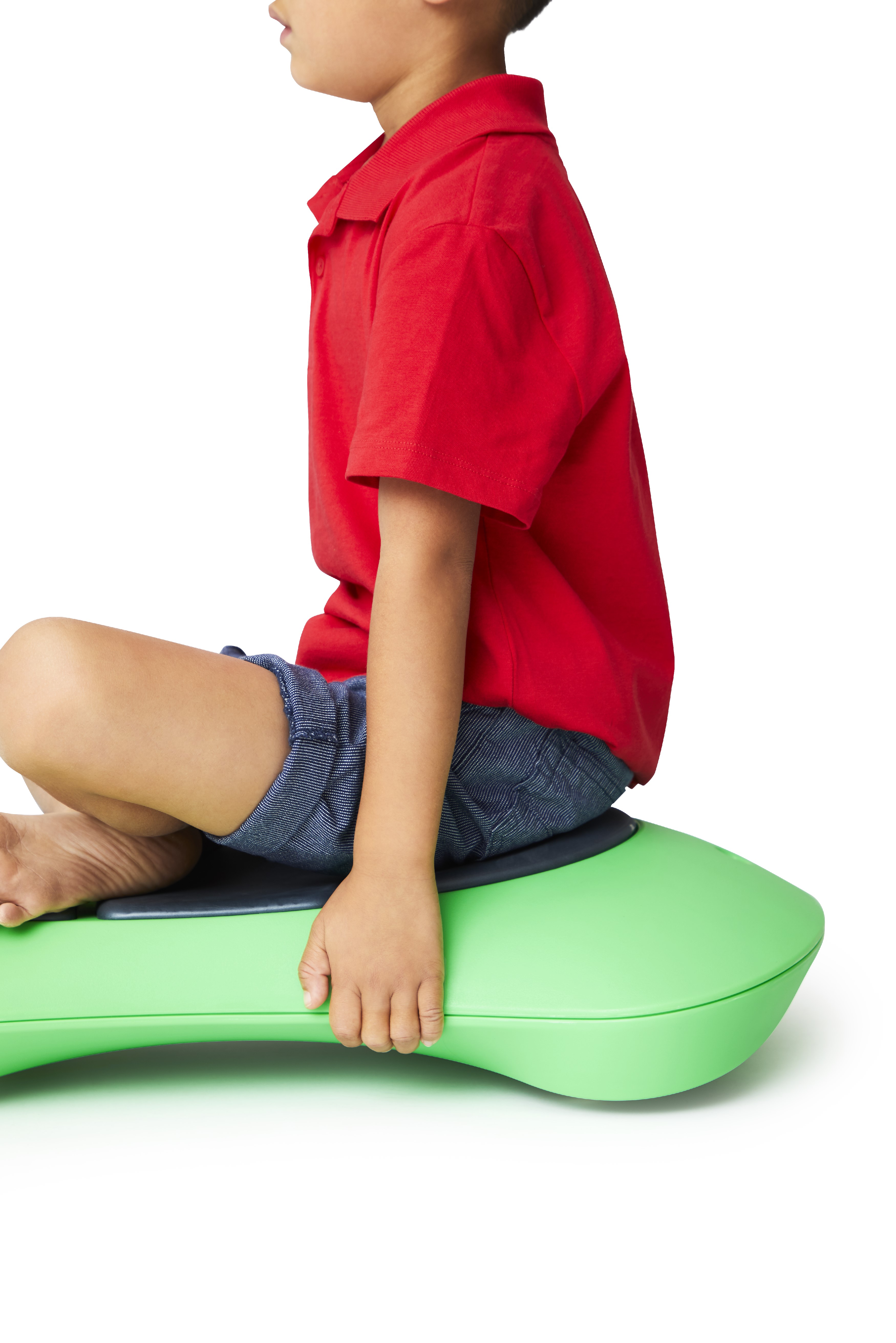 To train John's muscles and improve his fall reactions and muscle speed, I ask John to sit cross-legged on the Floor Surfer® with his hands on his knees (see photo).